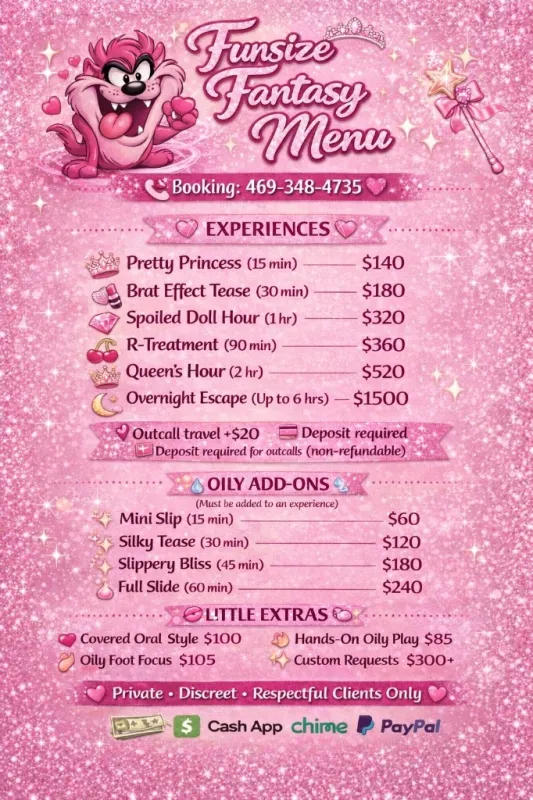 💦✨ FUNSIZE BRAT — YOUR 5⭐ FREAK ✨💦 👑 New girl in the city — cute, exclusive, unforgettable 🚫 No car dates ✳Outcalls require $20 deposit✳ 💸 Nothing under $120 ⚠ Lowball = Blocked 📱 FaceTime / Google Meet verification only ❌ No verify = No meet •••••••••••••••••••••••••••••• 💆♂ Nuru Massages 💦 ✋ Handjobs 🦶🏽 Footjobs 🫦 FaceTime Shows •••••••••••••••••••••••••••••• 🚛 Trucker friendly ⭐ Overnights available 💕 Fetishes = extra $$ •••••••••••••••••••••••••••••• 💬 Anything not listed Ask for more info 💕 •••••••••••••••••••••••••••••• 🚫 No bare / no fluid exchange 🚫 No GFE / no anal •••••••••••••••••••••••••••••• 📲 Text for rates & info 🌐 social media: 💋✨ OnlyFans:Funsiizebratt 💗🎀 Instagram: Funsiizebratt_ 💕🐥twitter : Funsiizebratt