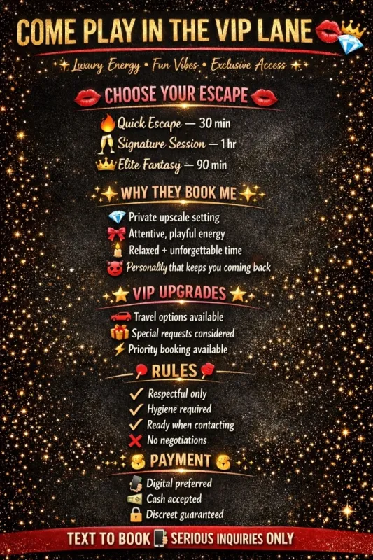 Why wait for the weekend Come enjoy a little midweek relaxation π Private vibes, clean setting, and an experience that keeps them coming back. π¦ RATES β’ $70 QV β’ $150 / 30 mins β’ $220 / 1 hour π READ BEFORE TEXTING β’ INCALLS ONLY β NO OUTCALLS EVER β’ Local numbers ONLY β’ Private & discreet location β’ Respect is mandatory π« NO bare services π« NO filming / photos π« NO facials / CIM π« NO time wasters π° Cash preferred Cash App & Apple Pay accepted π² Text ONLY when ready to come Midweek stress relief done right π
